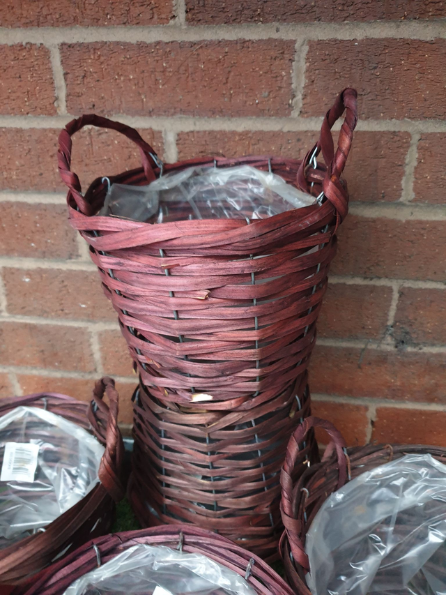 Chestnut brown indoor basket comes with handles. Height 17cm / Width 20cm. Includes plastic liner inside basket.