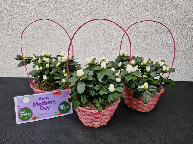 MOTHER DAY GIFT - Indoor azalea flower in pink wicker basket. With abundant petals and rich green foliage, this Azalea plant creates an eye-catching gift perfect for any mum this mothers day. Sunday 30th March 2025. All mothers gifts are collection only we do not offer UK delivery on this product!