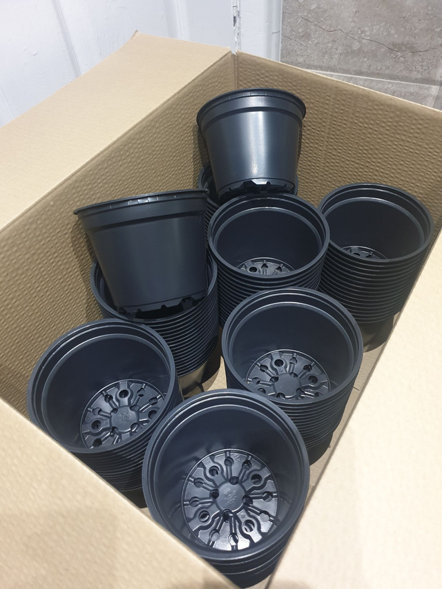 Brand new pack of 140 black plastic round pots. Pack of 140 pots. Perfect for growing your plants in your greenhouse. Why not start growing your own fruit and vegetables in these handy pots.