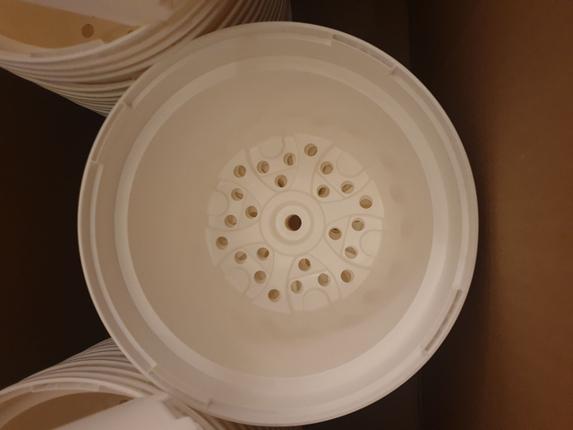 Box of x65 brand new plastic plant pots. White hard plastic 2 Litre plant pots. Width - 17cm / Depth 14cm. Great way of buying cheaper pots in bulk! Perfect for younger plants to start off in.