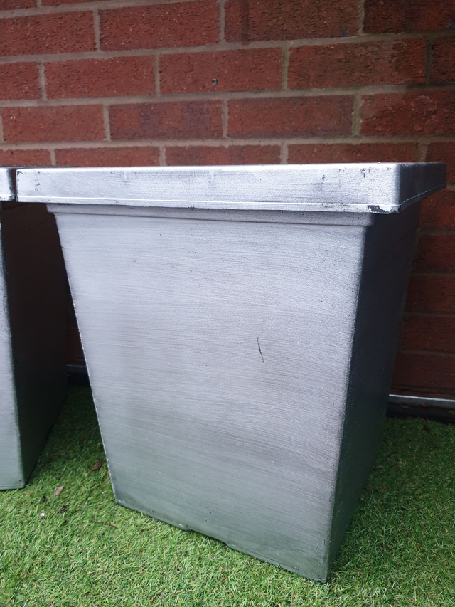Tuscany tall patio planter. Silver sparkle hard plastic planter. Height 42cm / Width 37cm. Comes with pre-drilled drainage holes at the bottom of the planter.